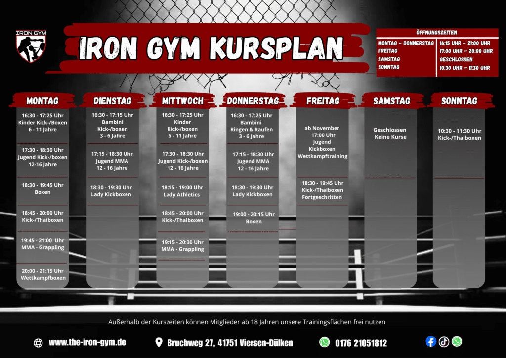 Im Iron Gym Dülken dreht sich alles um die Leidenschaft für Kampfsport. Unser Ziel ist es, dich körperlich und mental stärker zu machen – egal ob du Einsteiger bist oder schon Erfahrung hast. Bei uns trainierst du in familiärer Atmosphäre mit professionellen Trainern.